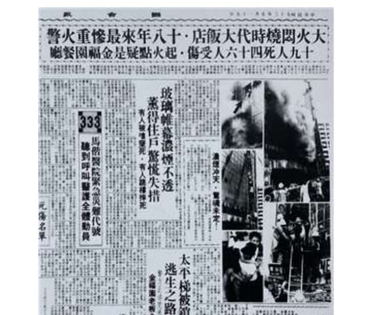 Kasus kebakaran Hotel Shidai pada tahun 1984, menewaskan 19 orang.(sumber: National Newspaper Database, National Central Library)