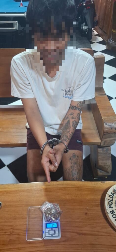 ” Dari hasil penggeledahan, petugas berhasil mengamankan barang bukti berupa 9 paket tembakau sintetis dengan total berat 8,43 gram, satu unit timbangan digital, satu unit handphone iPhone warna hitam, serta satu buah tas ransel warna hitam ” tambah nya.